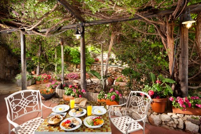 סוכת הגפנים הנעימה משקיפה לנוף עוצר נשימה, ומשרה על היושבים בצילה שלווה ורוגע אין סופיים.